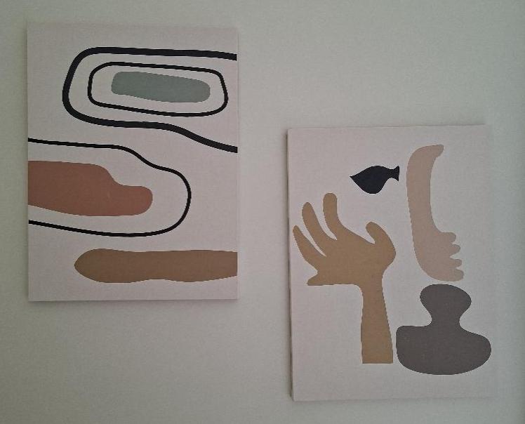2 peintures sur toiles abstraites. 80 x 60 cm. Localisation: BLB, 3 rue de la Fossé aux Leux - 91700 Sainte Geneviève des Bois