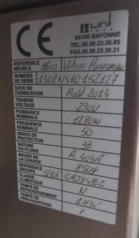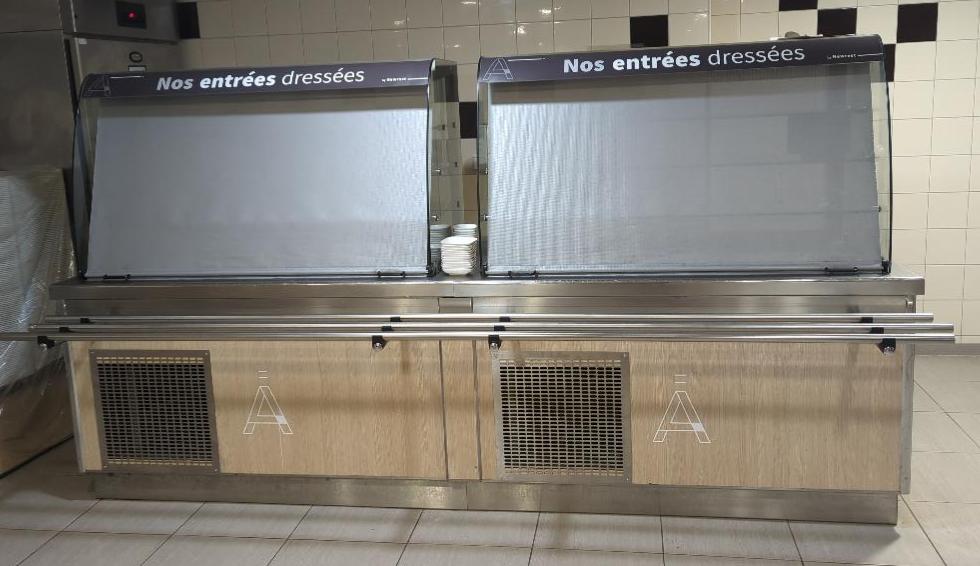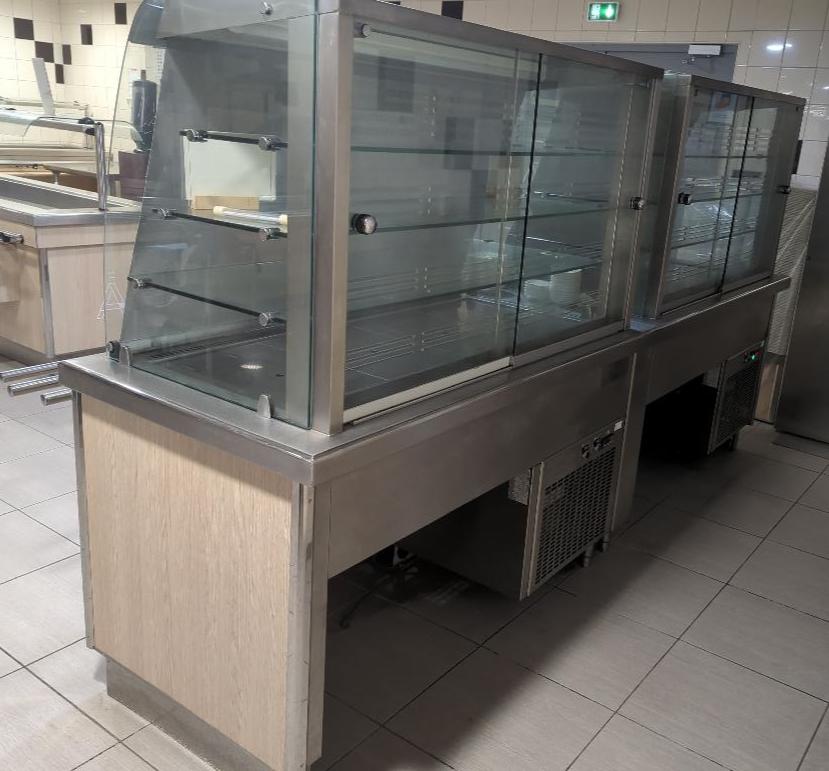 2 vitrines de présentation réfrigérées de marque Link Inox, avec rideau coulissant. 170 x 320 x 120 cm. (cuisine)