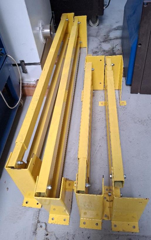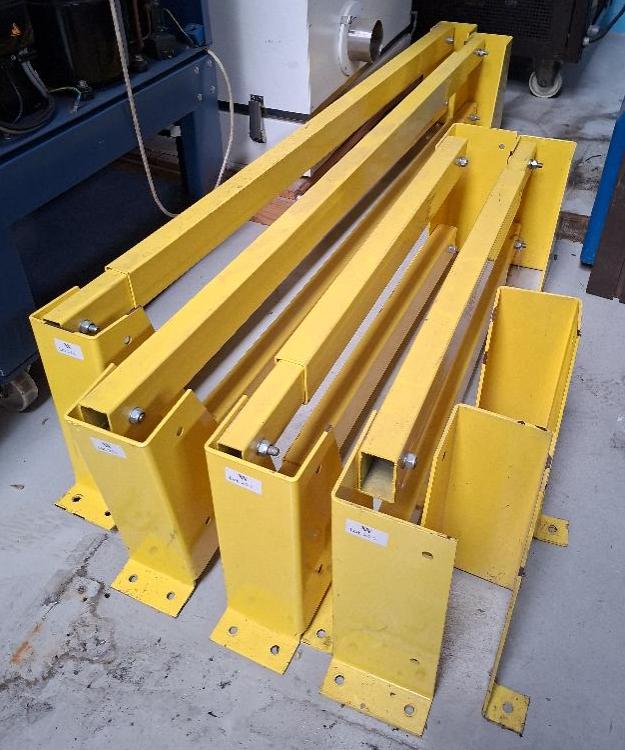 4 barres antichocs en acier laqué jaune, dont 2 de 184 cm et 2 de 112 cm, plus 2 plots