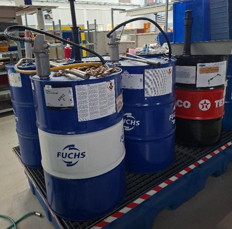 5 fûts avec pompes, divers modèles (voir détails sur photos)