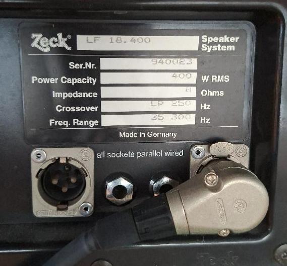 Ampli de marque Zeck modèle LF18.400. Localisation: auditorium