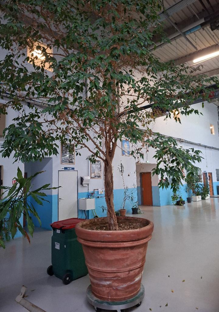 Arbre ficus dans son pot en terre cuite. Dim pot : 90 x 110 cm. Hauteur avec pante approx 4m