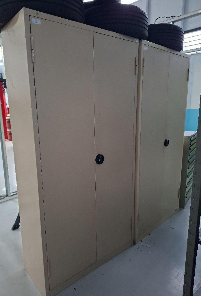 Armoire en métal blanc ouvrant à 2 portes à clé. 200 x 100 x 43 cm. 2 unités. Vendu à l’unité avec faculté de réunion.