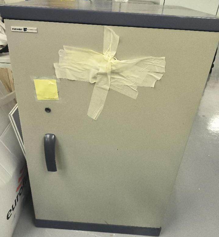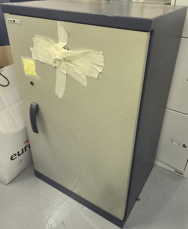 Armoire forte de marque Fichet de couleur bleu et grise. Dim : 105 x 66 x 50 cm. 3 UNITÉS AU TOTAL. Niveau -1 réserve : 3 unités