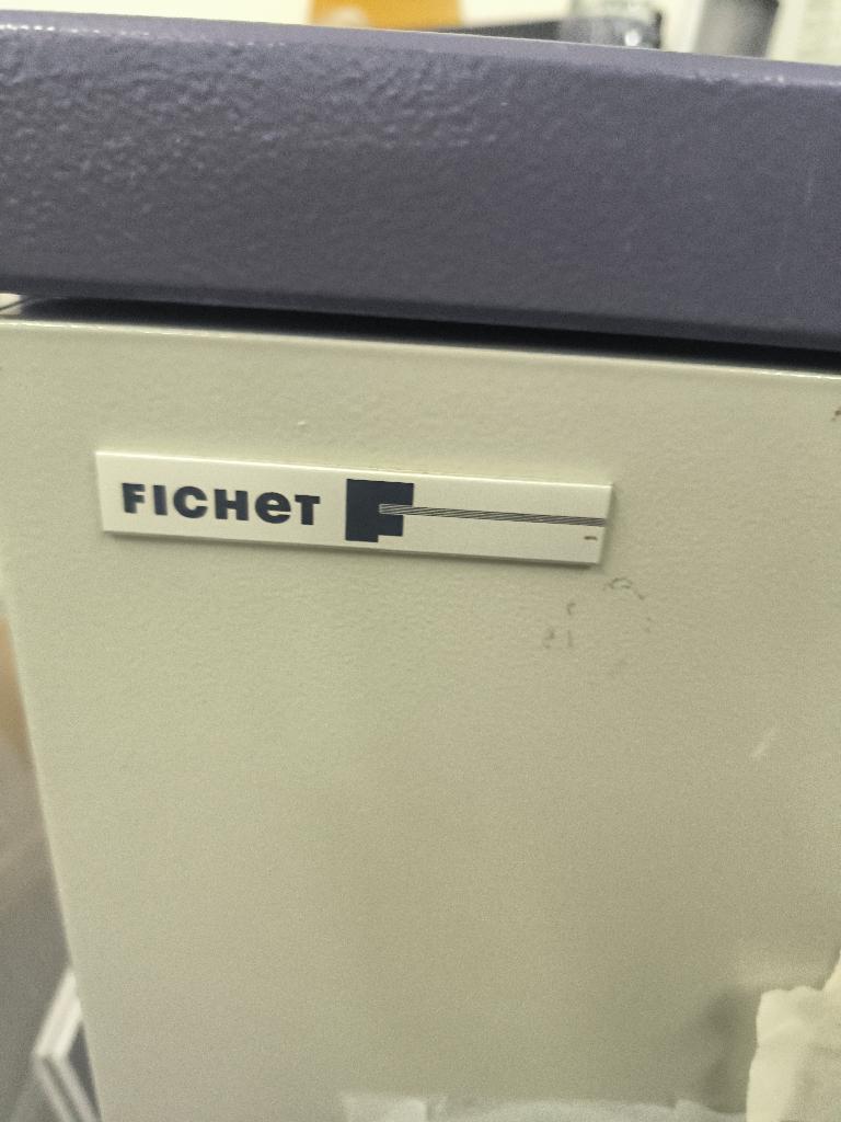 Armoire forte de marque Fichet de couleur bleu et grise. Dim : 105 x 66 x 50 cm. 3 UNITÉS AU TOTAL.