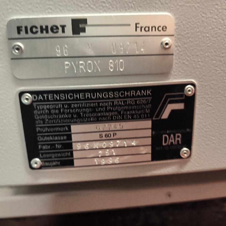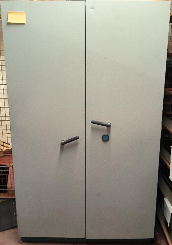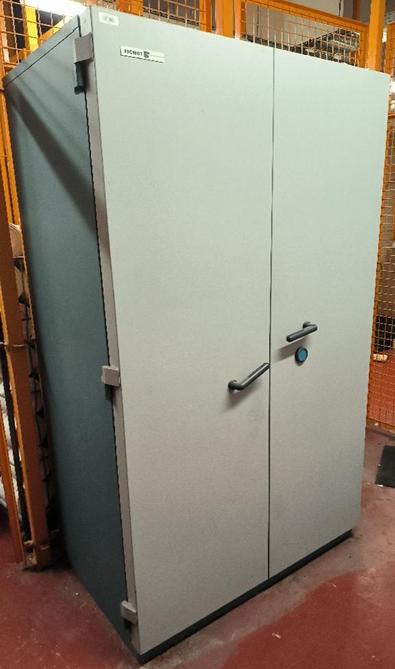 Armoire forte de marque Fichet de couleur grise et bleu. Dim : 200 x 120 x 78 cm. 2 UNITES AU TOTAL. (étiquette 5103) Niveau -1 réserve cuisine : 2 unités