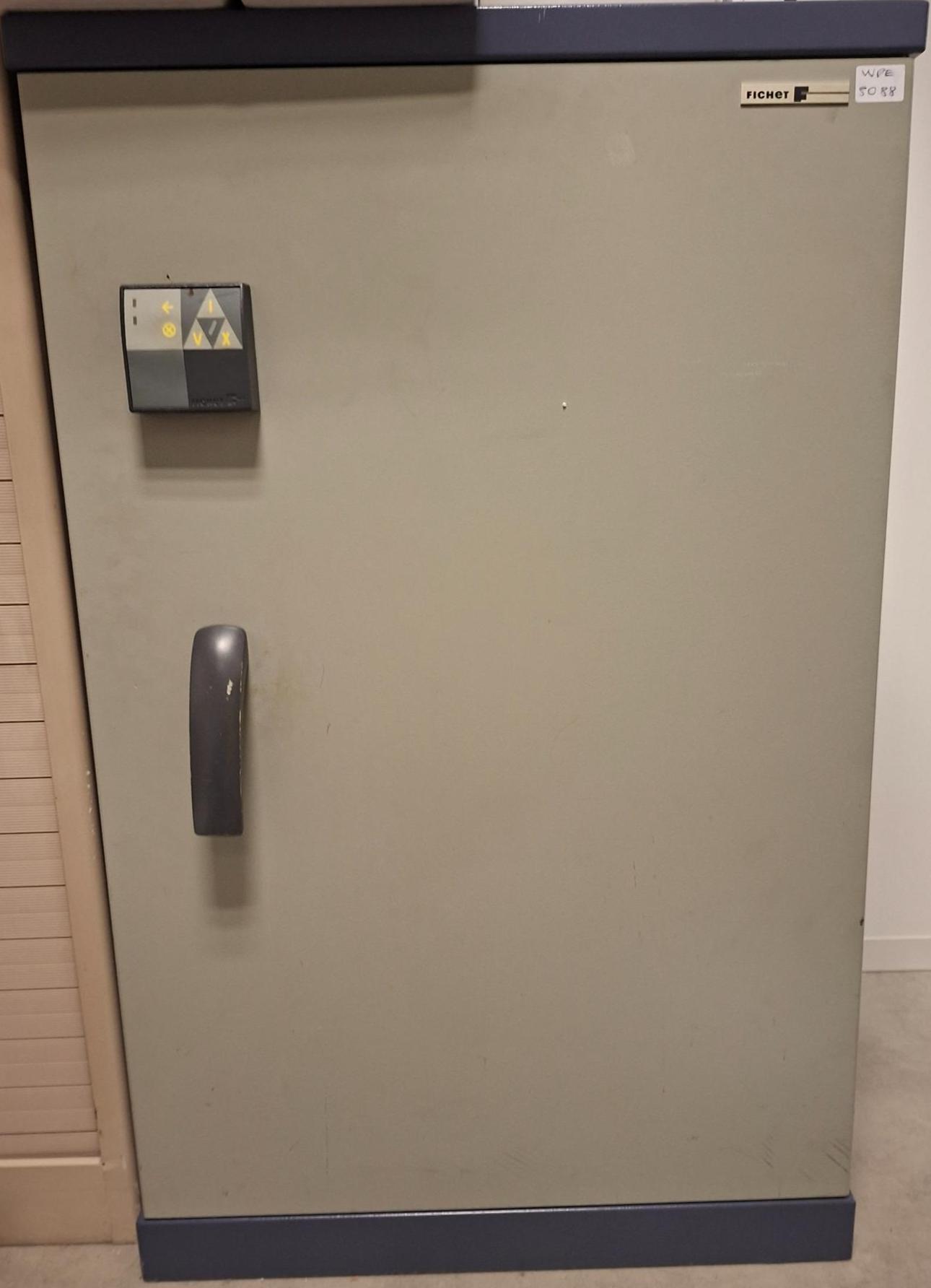 Armoire forte de marque Fichet. Dim : 105 x 65 x 50 cm. 1 UNITÉ AU TOTAL. (étiquette 5088) 5ème étage salle débarras : 1 unité