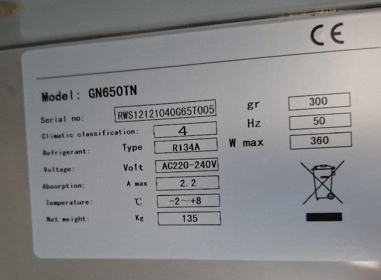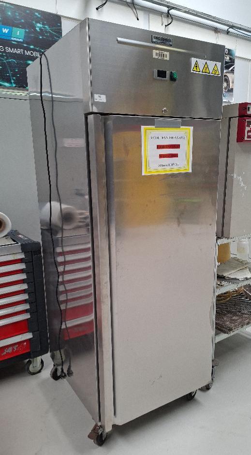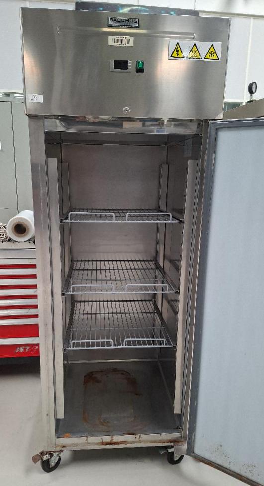 Armoire froide sur roulettes de marque Bacchus modèle GN650TN en inox alimentaire ouvrant à une porte. 200 x 74 x 83 cm