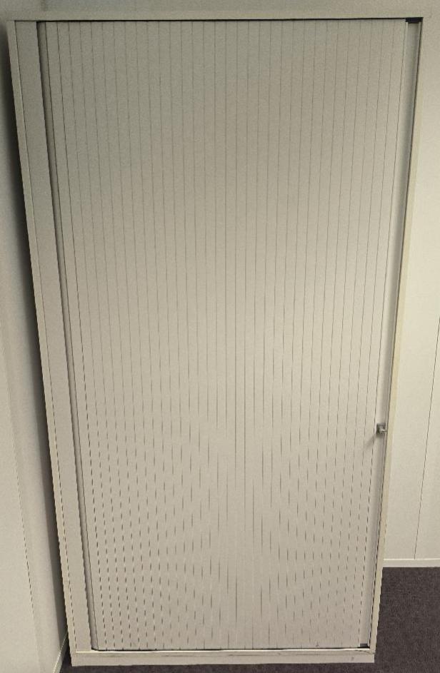 Armoire haute métallique de couleur blanche, 1 porte rideau, étagère métallique noire. Dim : 192 x 100 x 44 cm. 96 UNITÉS AU TOTAL. (étiquette 5002)