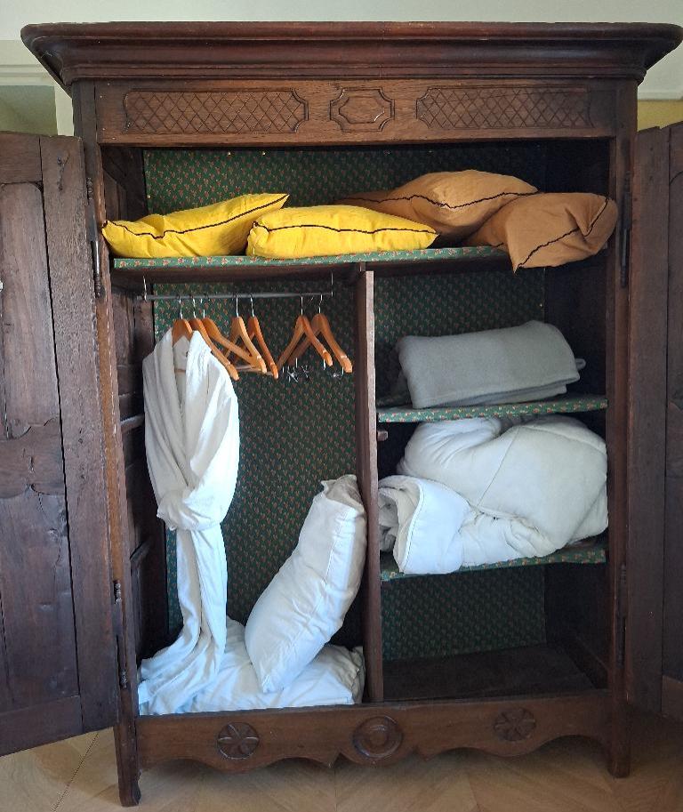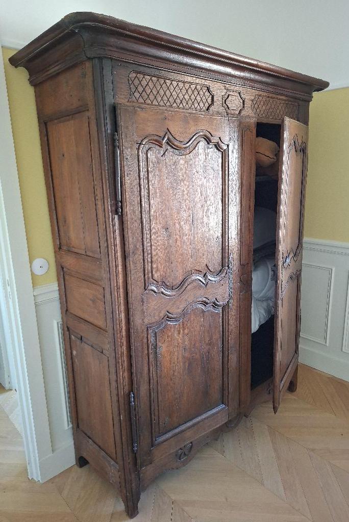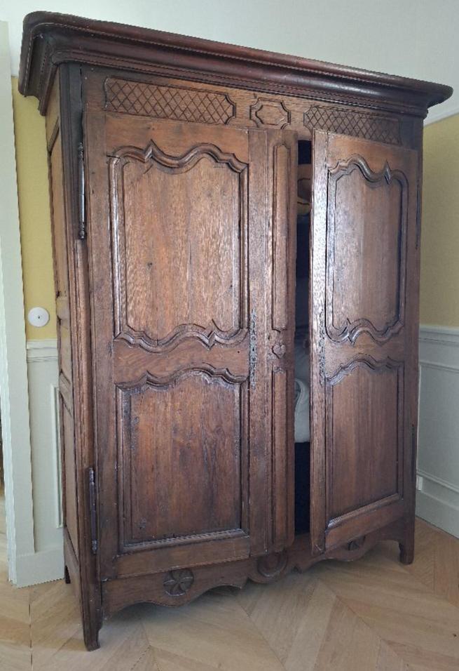 Armoire penderie rustique en bois à 2 portes. 218 x 145 x 57 cm. Localisation: BLB, 3 rue de la Fossé aux Leux – 91700 Sainte Geneviève des Bois