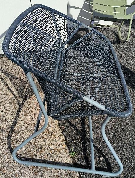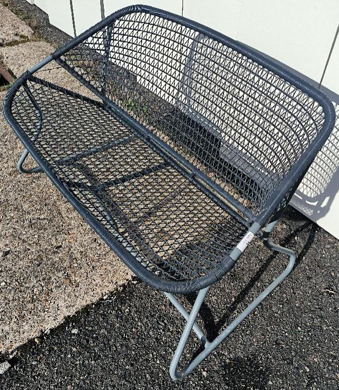 Banc d’extérieur de marque Fermob, structure en métal anthracite, assise et dossier en fils de nylon. 83 x 122 x 65 cm. Localisation : 30 rue Beauregard 60440 Nanteuil-le-Haudouin.