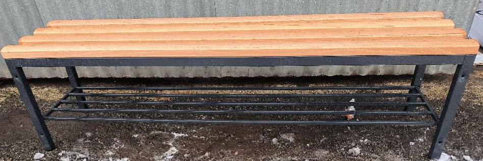 Banc structure en métal anthracite et assise en bois naturel, avec range-chaussures. Dim : 42 x 150 x 36 cm. Localisation : 30 rue Beauregard 60440 Nanteuil-le-Haudouin