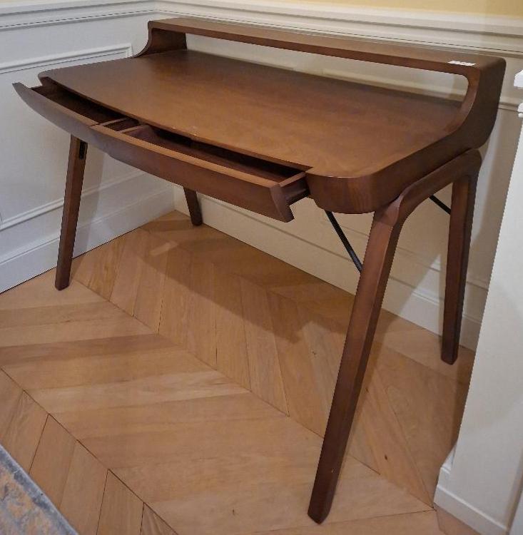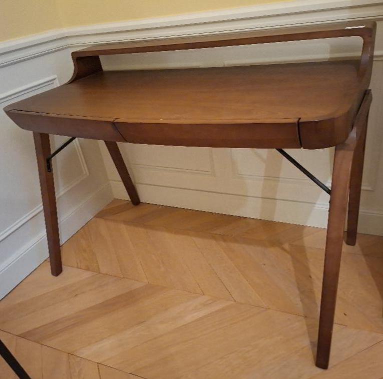 Bureau de style scandinave en bois ouvrant par 2 tiroirs en ceinture. 88 x 120 x 59 cm. 7 unités. Vendu à l’unité avec faculté de réunion. Localisation: BLB, 3 rue de la Fossé aux Leux – 91700 Sainte Geneviève des Bois