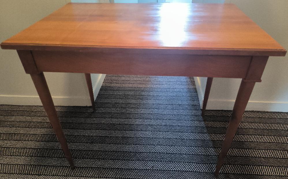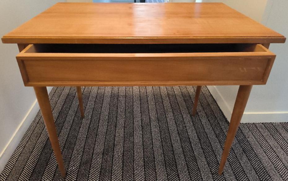 Bureau en bois de citronnier avec tiroir. Dim : 75 x 90 x 60 cm. 3 unités. Vendu à l’unité avec faculté de réunion. Localisation: BLB, 3 rue de la Fossé aux Leux – 91700 Sainte Geneviève des Bois