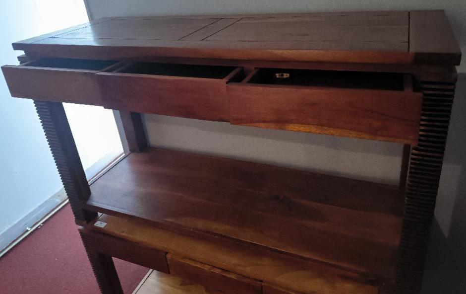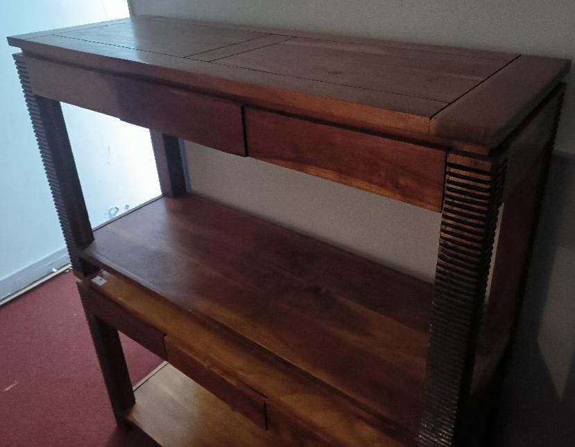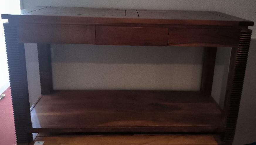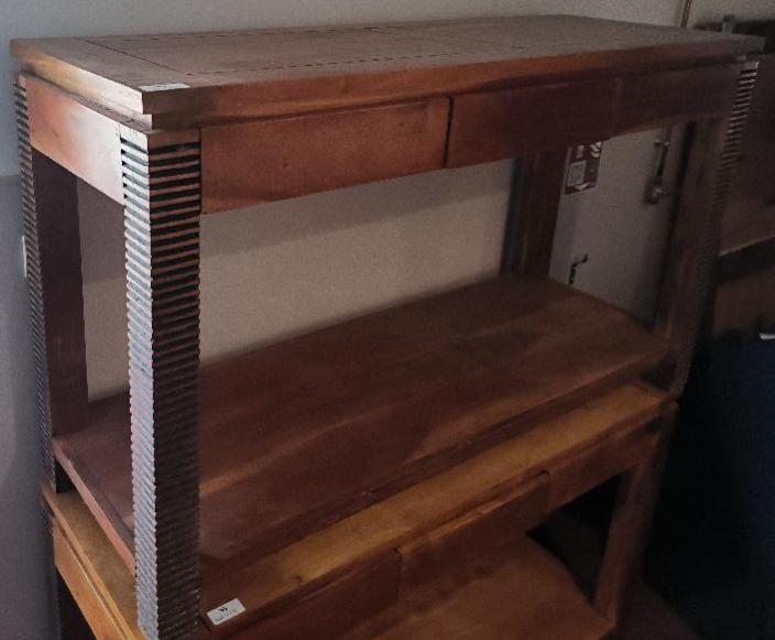 Bureau en bois de couleur chêne reposant sur 4 pieds striés noirs, 3 tiroirs en ceinture. Dim : 76 x 130 x 45 cm. 2 unités. Vendu à l’unité avec faculté de réunion. Localisation: BLB, 3 rue de la Fossé aux Leux – 91700 Sainte Geneviève des Bois