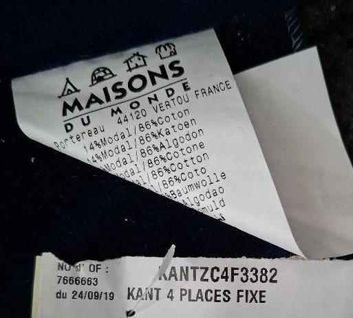 Canapé 4 places de marque Maisons du Monde modèle Kant recouvert de velours bleu marine, piétement en bois foncé. 70 x 230 x 92 cm. 2 unités. Vendu à l’unité avec faculté de réunion. (3ème). Localisation: 10 rue d’Arcueil – 94150 Rungis