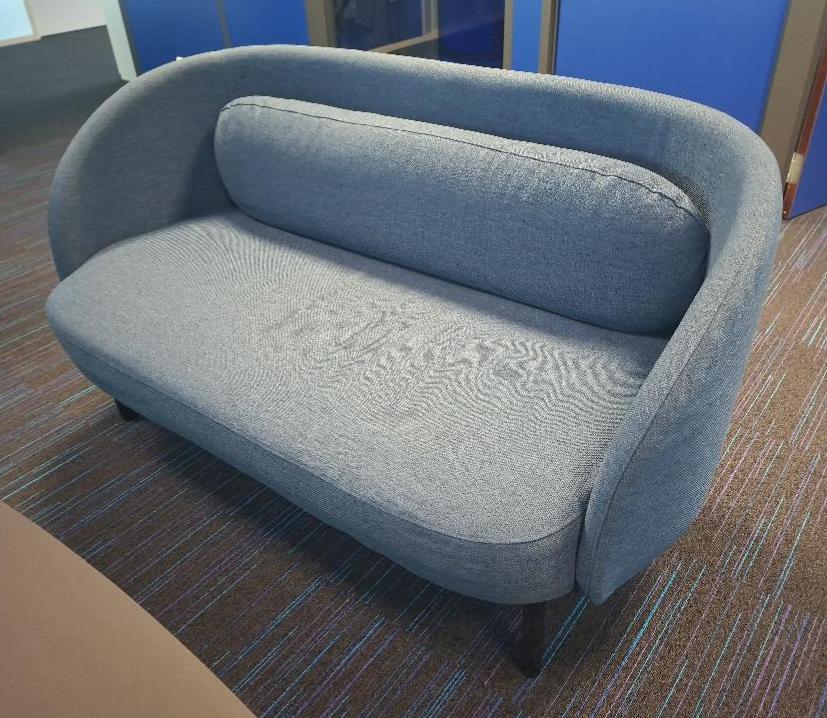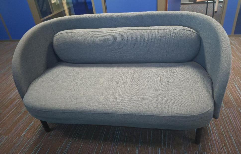 Canapé design Busetti Garuti Redaelli modèle Fuuga édition Bolia recouvert de tissu chiné bleu reposant sur 4 pieds en bois noirci. 85 x 160 x 93 cm. 1 unité. Localisation: 5ème étage zone bleue