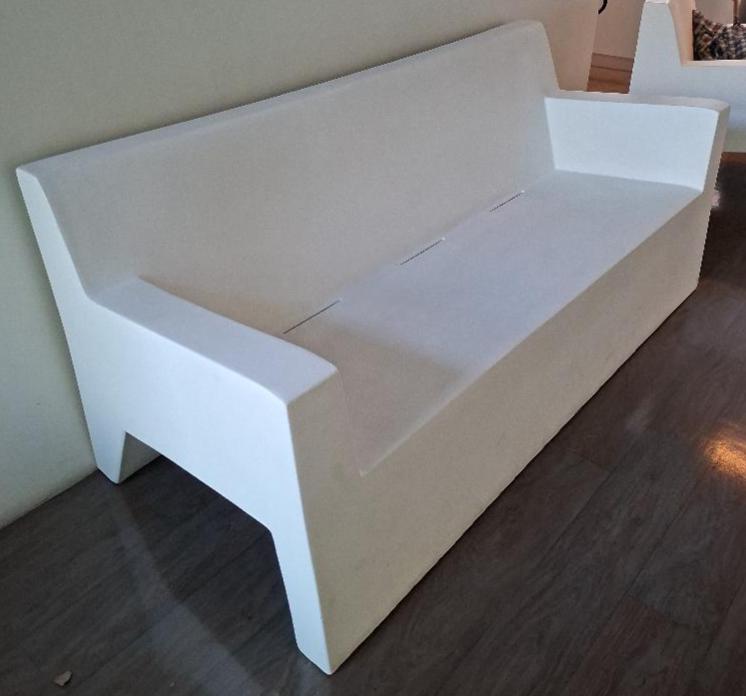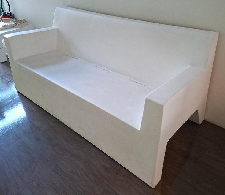 Canapé d’extérieur design Studio Vondom modèle Jut édition Vondom en polyéthylène blanc. 80 x 182 x 78 cm. Localisation: 19 rue Neuve Tolbiac – 75013 Paris (restaurant)