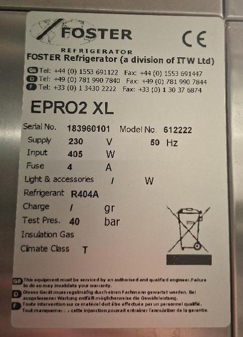 Cellule de refroidissement de marque Foster modèle EPRO2XL en inox. 227 x 100 x 160 cm. Localisation: cuisines