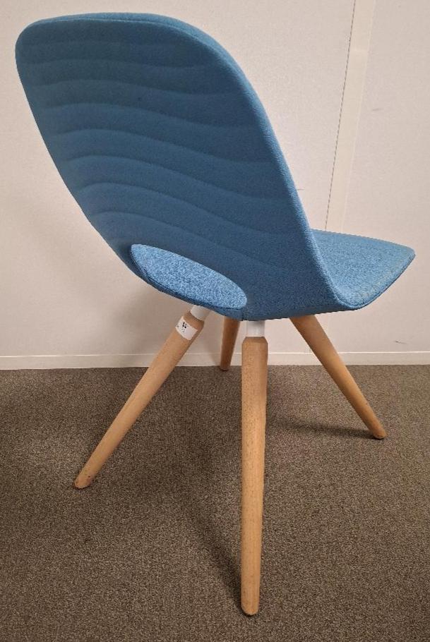 Chaise à coque ajourée recouverte de tissu surpiqué bleu roi reposant sur 4 pieds obliques en bois naturel. 81 x 46 x 57 cm. 4 unités. Vendu à l’unité avec faculté de réunion. Localisation: 26 rue Cambaceres – 75008 Paris. (1er étage)