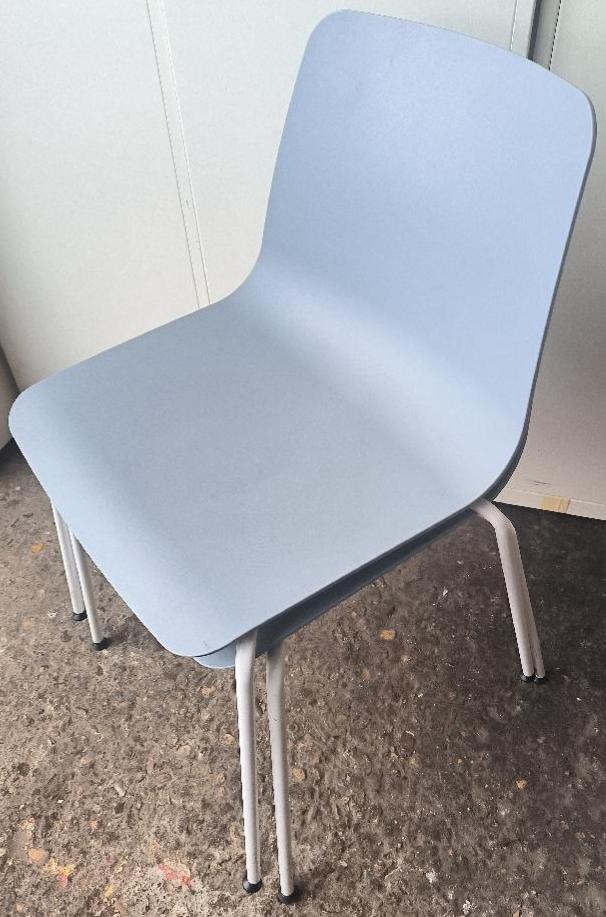 Chaise empilable design Simon Pengelly modèle Varya édition Inclass, coque en polypropylène de couleur bleu ciel, piétement en acier de couleur blanc. Dim : 81 x 57 x 52 cm . 10 unités. Vendu à l’unité avec faculté de réunion. Localisation : 30 rue Beauregard – 60440 Nanteuil-le-Haudouin