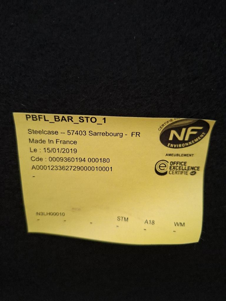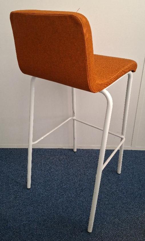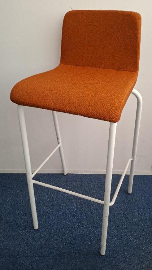 Chaise haute empilable de marque Steelcase, assise et dossier en tissu chiné brique, piétement en acier laqué blanc. 101 x 42 x 46 cm. 6 unités, Vendu à l’unité avec faculté de réunion. Localisation: Tour Coeur Défense – 92400 Courbevoie (TA 26ème)