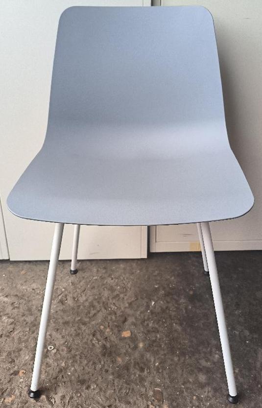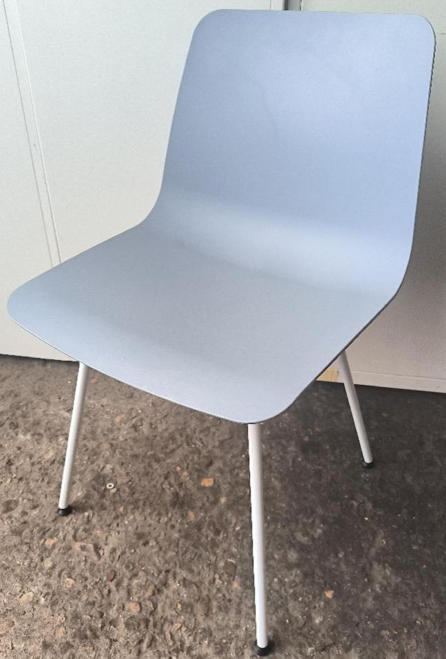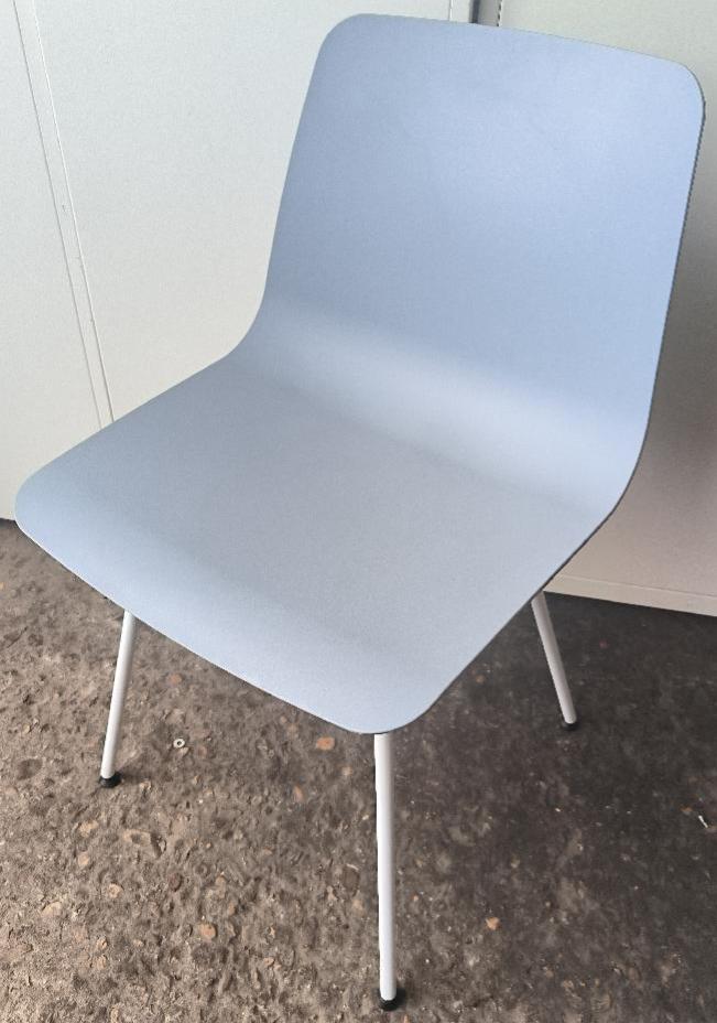 Chaise non empilable design Simon Pengelly modèle Varya édition Inclass, coque en polypropylène de couleur bleu ciel, piétement en acier de couleur blanc. Dim : 81 x 48 x 50 cm . 8 unités. Vendu à l’unité avec faculté de réunion. Localisation : 30 rue Beauregard – 60440 Nanteuil-le-Haudouin