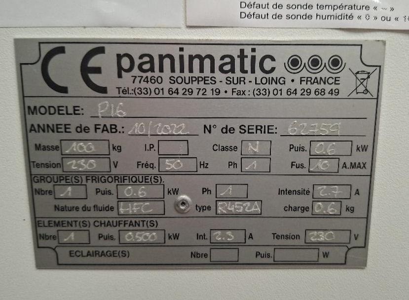 Chambre de fermentation de marque Panimatic modèle P16. 155 x 56 x 88 cm. Localisation: cuisines