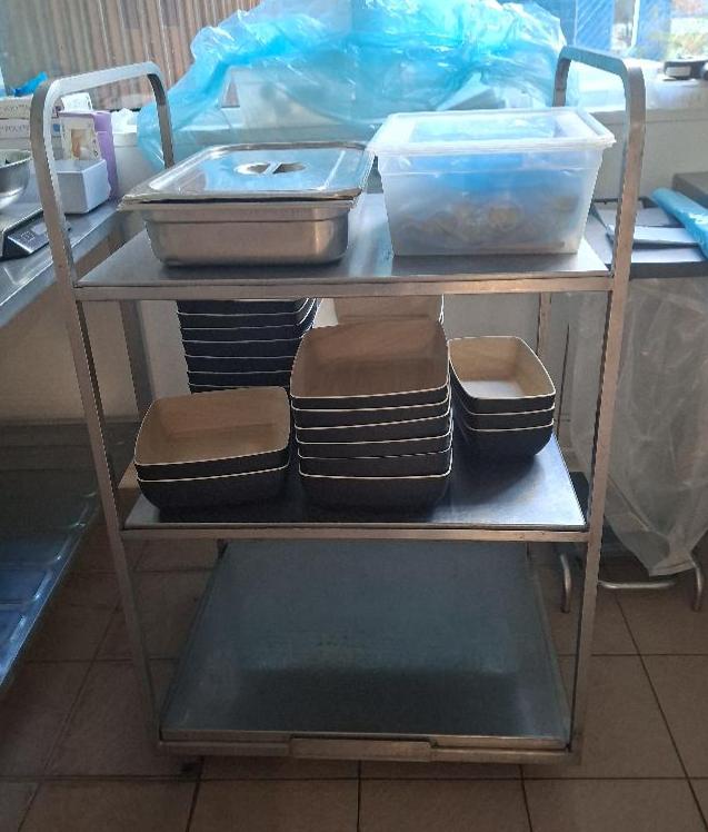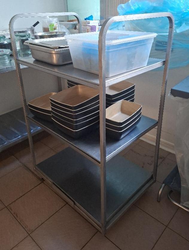 Chariot de service en inox à 3 niveaux. 125 x 76 x 56 cm. Localisation: cuisines