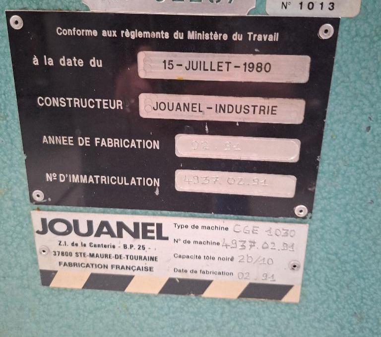 Cisaille guillotine de marque Jouanel Industrie type CGE 1030 (voir détails sur photos)