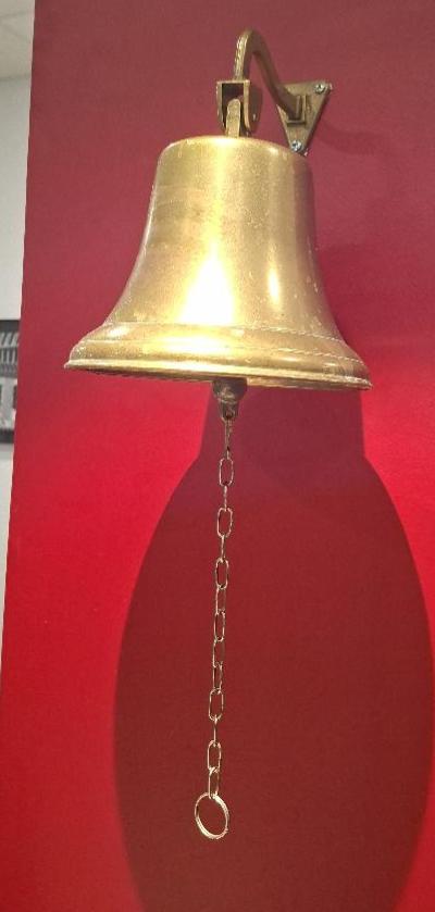 Cloche en bronze doré, fixation murale. Hauteur 22cm. (5ème). Localisation: 10 rue d’Arcueil – 94150 Rungis