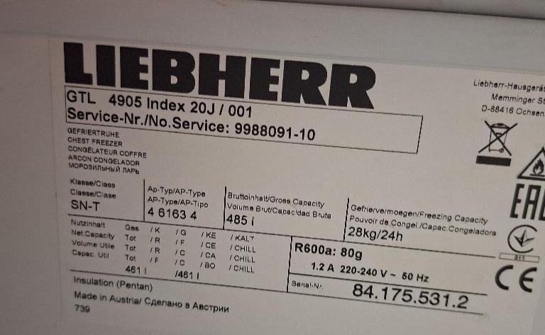 Congélateur de marque Liebherr, capacité 461 litres. 92 x 140 x 80 cm. 6 unités. Localisation: -1 réserve cuisine – Image 3