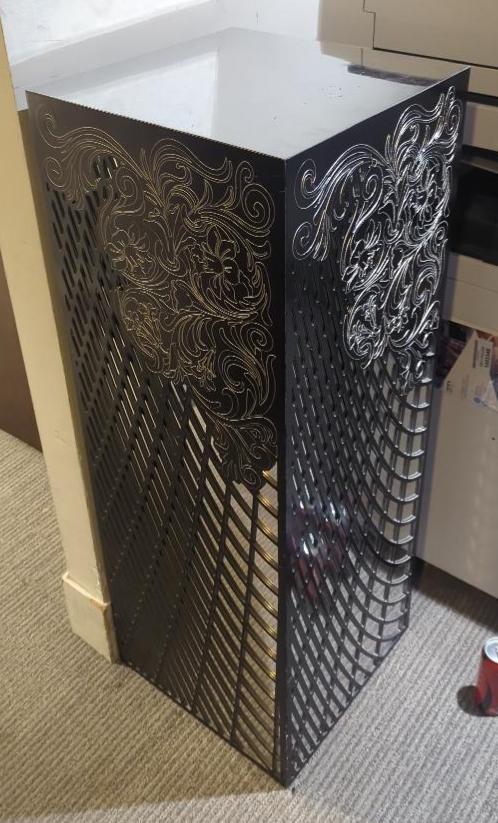 Console de présentation rectangulaire en bois recouvert de motifs en miroir. 110 x 40 x 40 cm. Adresse de retrait: 30 rue des Peupliers – 92000 Nanterre