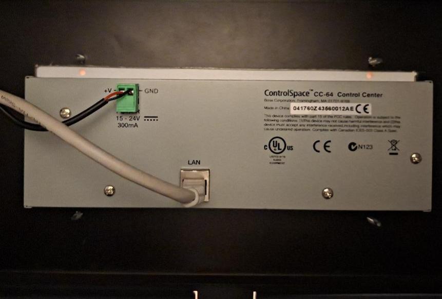 Control center de marque Bose modèle ControlSpace CC-64. Localisation: auditorium