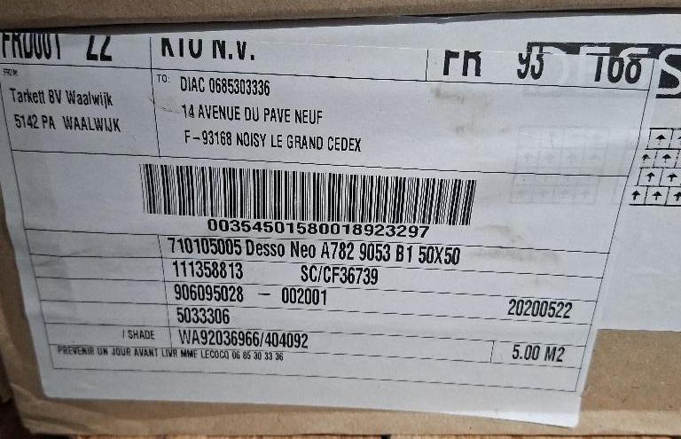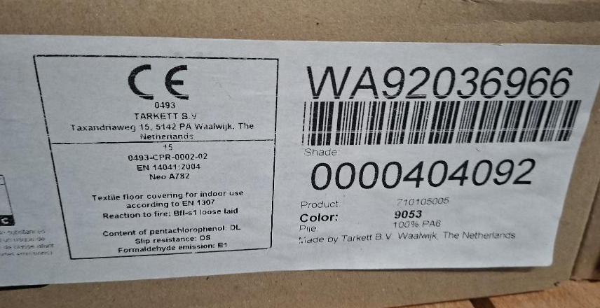 Dalle de moquette 50 x 50 cm de marque Desso modèle Néo référence couleur 9053. 10 cartons de 5m2 soit 50 m2. Localisation: -1