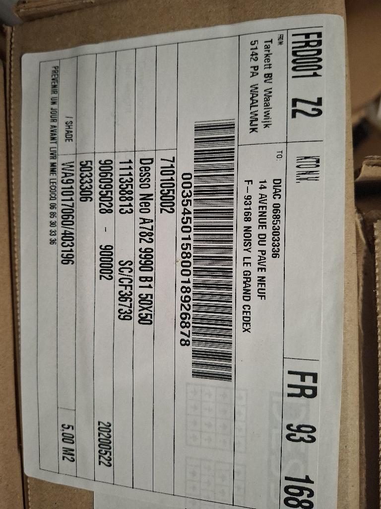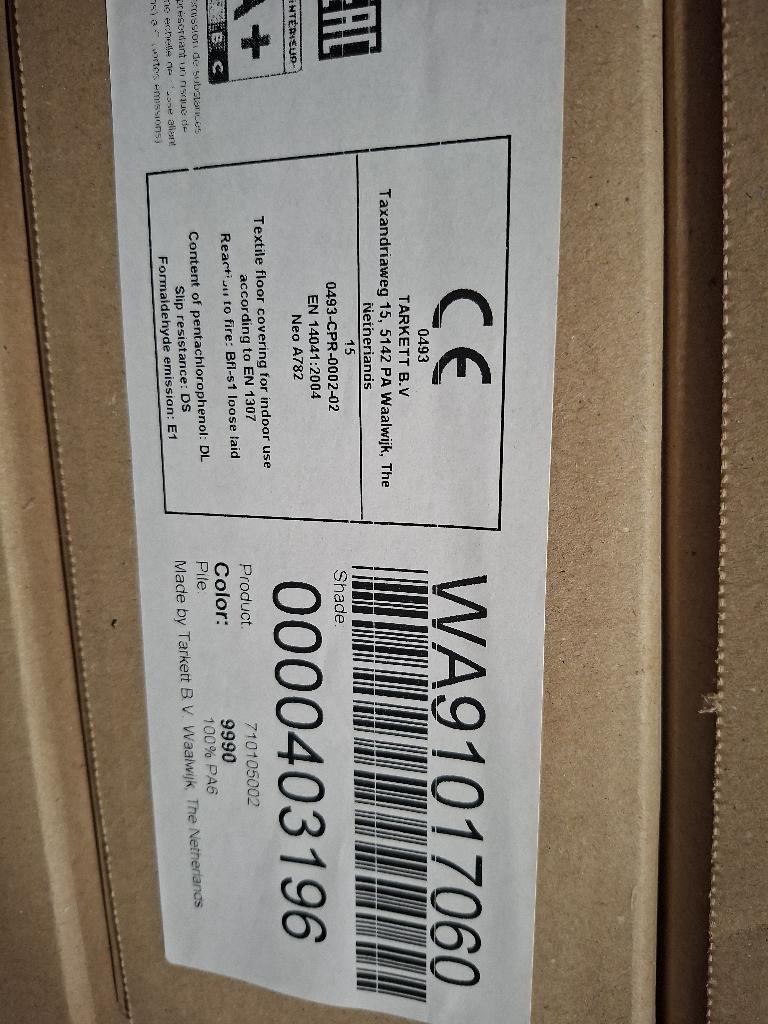 Dalle de moquette 50 x 50 cm de marque Desso modèle Néo, référence couleur 9990. 8 cartons de 5 m2