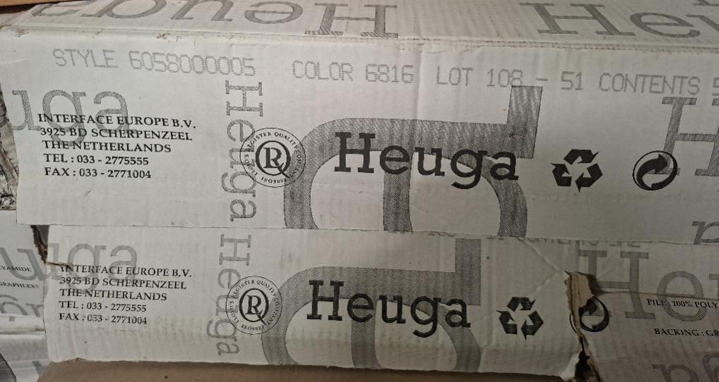 Dalle de moquette 50 x 50 cm de marque Heuga. 9 cartons de 5m2 soit 45 m2. Localisation: -1 réserve