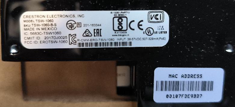 Écran tactile de marque Creston modèle TSW-1060 – 10,1 pouces de couleur noir. Non testé. Localisation : 30 rue Beauregard 60440 Nanteuil-le-Haudouin