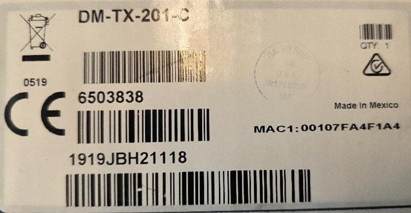 Émetteur de marque Crestron modèle DM-TX-201-C. Non testé. Localisation : 30 rue Beauregard 60440 Nanteuil-le-Haudouin