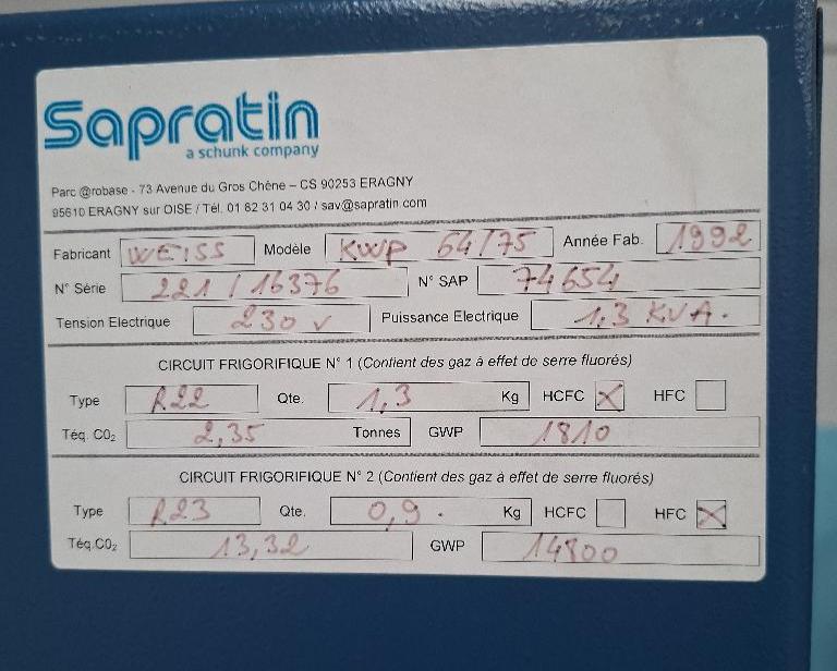 Enceinte thermique de marque Weiss modèle KWP 64/75 (voir détails sur photos)