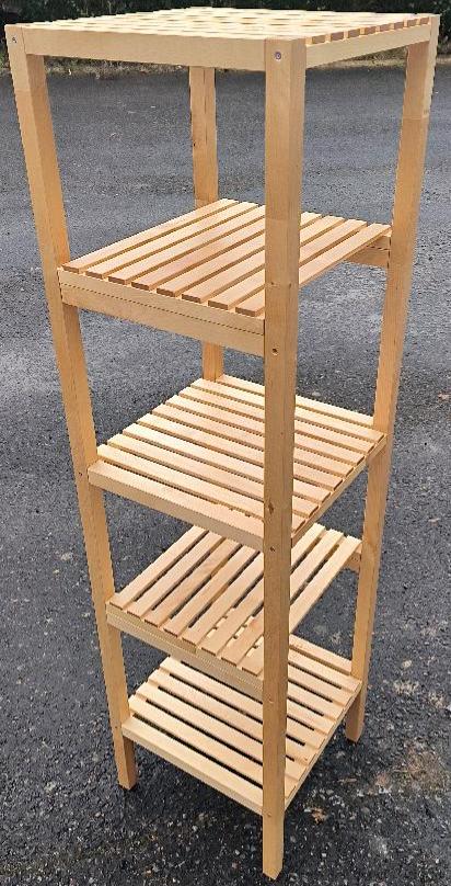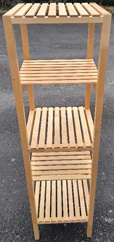 Étagère de rangement en bois naturel. Dim : 140 x 38 x 38 cm. Localisation : 30 rue Beauregard 60440 Nanteuil-le-Haudouin