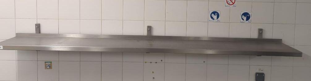 Etagère murale rectangulaire en inox alimentaire. 30 x 250 x 38 cm. Localisation: Tour Coeur Défense – 92400 Courbevoie