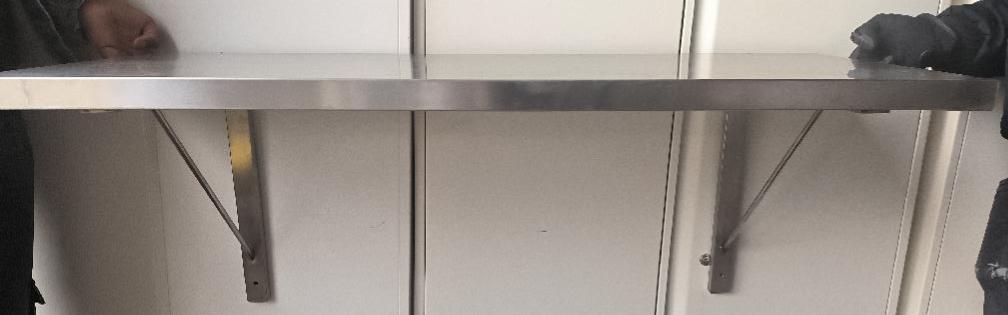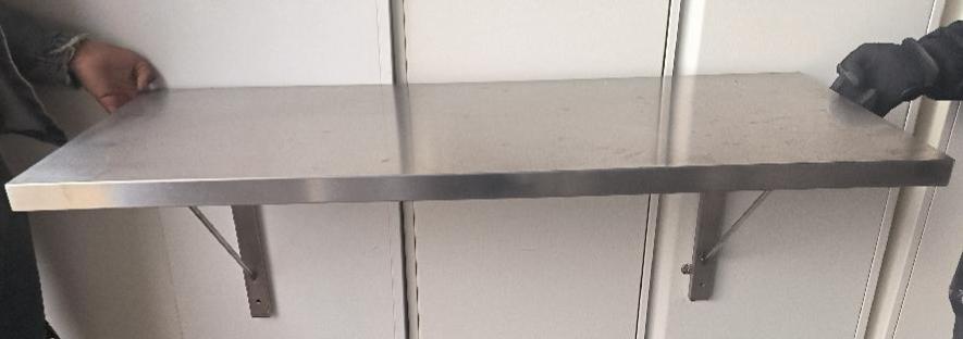 Etagère murale rectangulaire en inox alimentaire. Dim : 50 x 120 x 50 cm. 2 unités. Vendu à l’unité avec faculté de réunion. Localisation : 30 rue Beauregard – 60440 Nanteuil-le-Haudouin