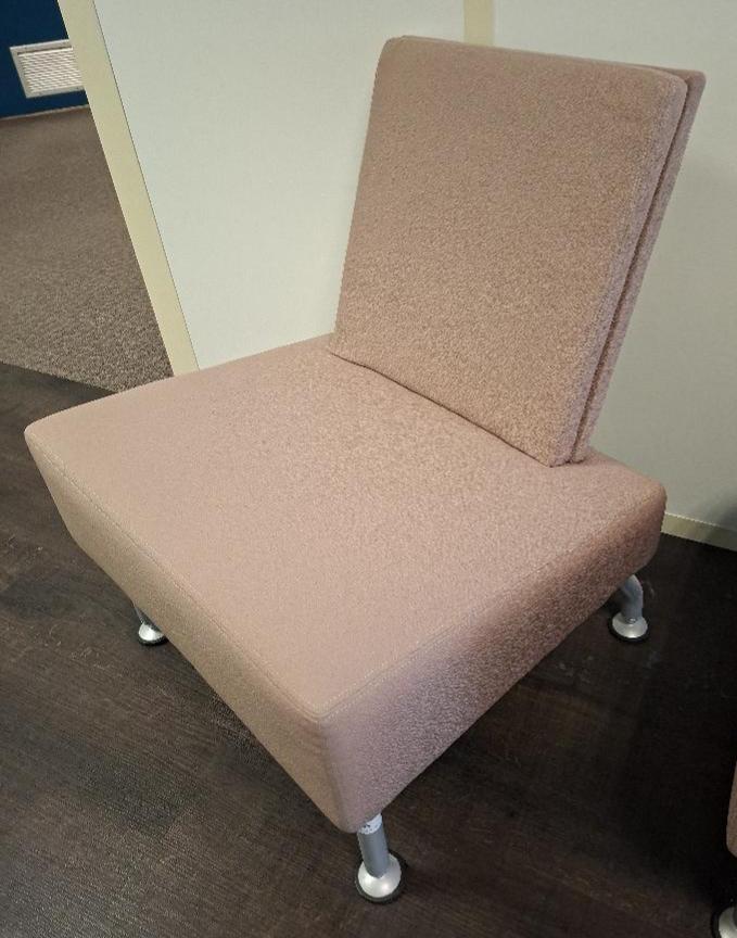 Fauteuil d’attente recouvert de tissu beige, piétement en acier laqué gris (qq tâches, usures) 81 x 68 x 72 cm. 14 unités. Localisation: 5ème étage (3 unités) / 4ème étage (4 unités) / 3ème étage (4 unités) / 2ème étage (3 unités)
