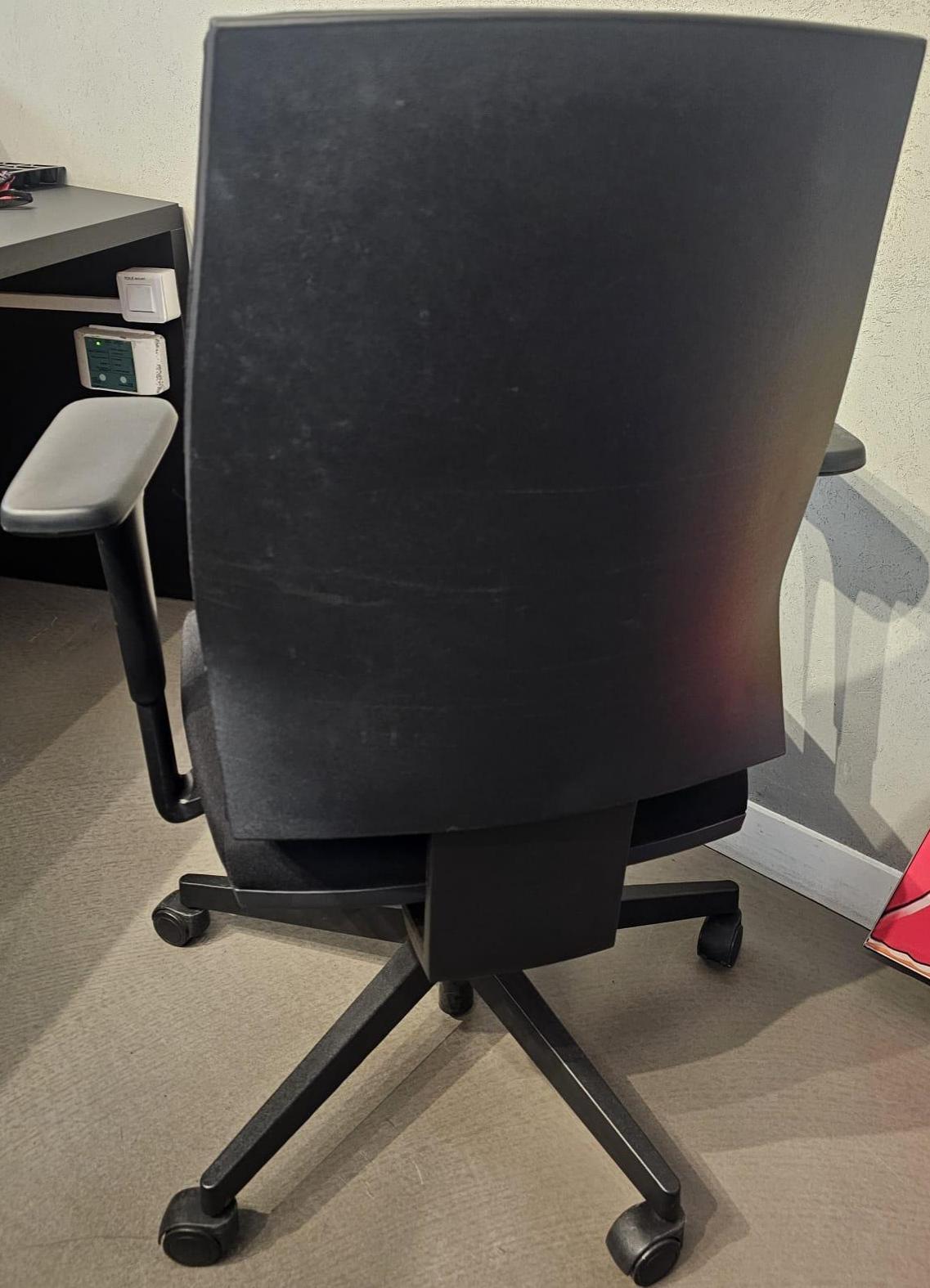 Fauteuil de bureau sur roulettes, assise et dossier en tissu noir. Dim : 114 x 69 x 70cm. 25 unités. Vendu à l’unité avec faculté de réunion. Localisation : 30 rue Beauregard 60440 Nanteuil-le-Haudouin