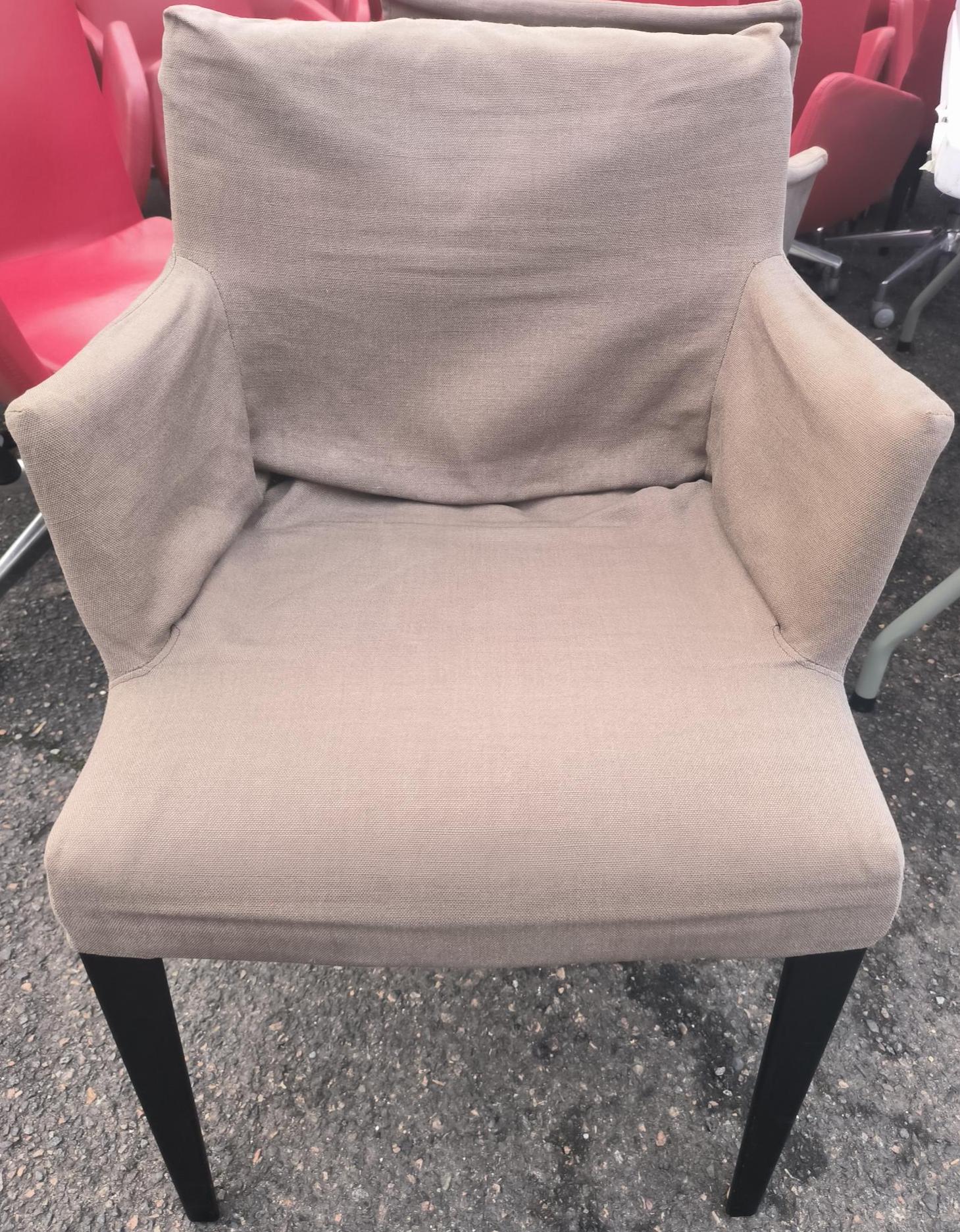 Fauteuil de marque B&B Italia en tissu gris et piètement en bois foncé. Dim : 83 x 58 x 55 cm. 40 unités. Localisation: 30 rue Beauregard 60440 Nanteuil-le-Haudouin.