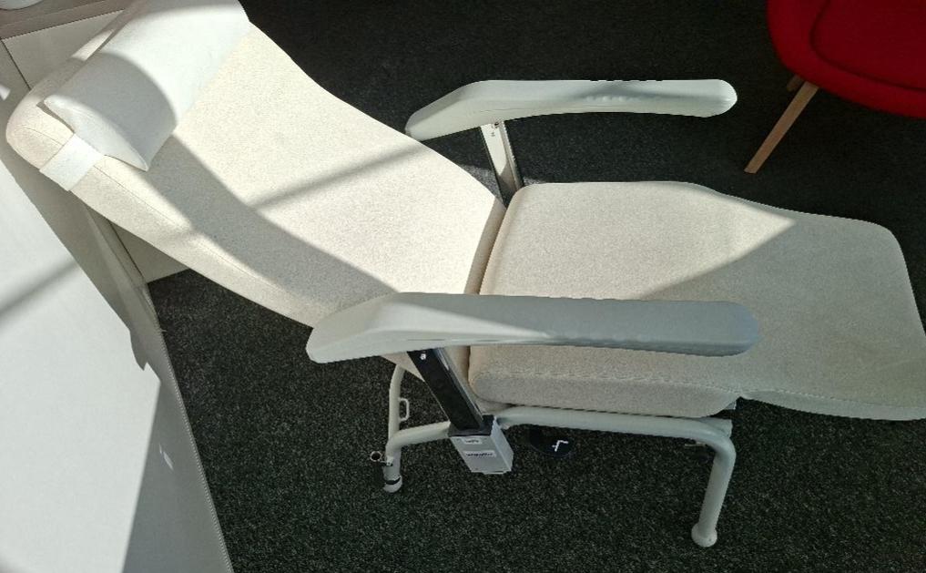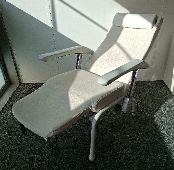 Fauteuil de relaxation inclinable de marque Navailles modèle Hemo recouvert de simili cuir beige. 82 x 145 x 66 cm. Localisation: 19 rue Neuve Tolbiac – 75013 Paris (salle de repos)