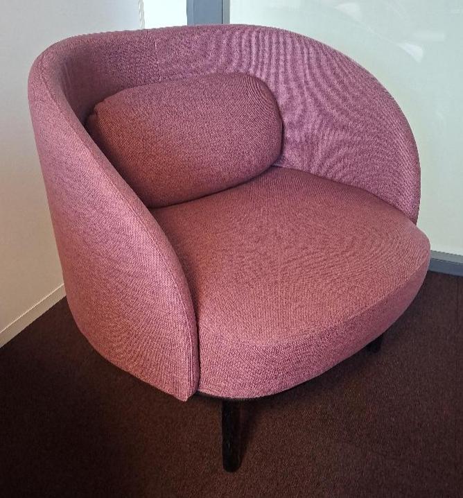 Fauteuil design Busetti Garuti Redaelli modèle Fuuga édition Bolia recouvert de tissu chiné grenat reposant sur 4 pieds en bois noirci. 87 x 90 x 70 cm. 2 unités. Localisation: 5ème étage zone rouge