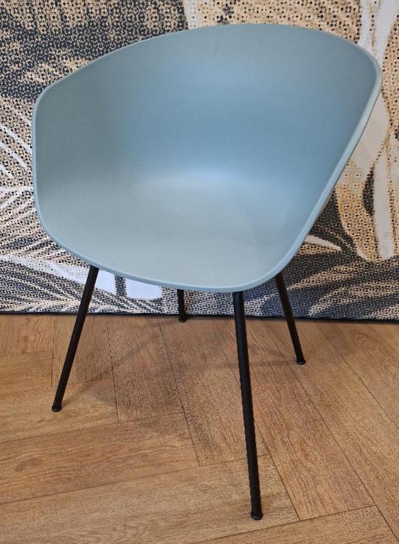 Fauteuil design Hee Welling modèle About A Chair 26 édition Hay, coque en polypropylène vert céladon, piétement en acier laqué noir. 77 x 59 x 50 cm. 5 unités. Vendu à l’unité avec faculté de réunion. Localisation: Tour Coeur Défense – 92400 Courbevoie (TA cafet)