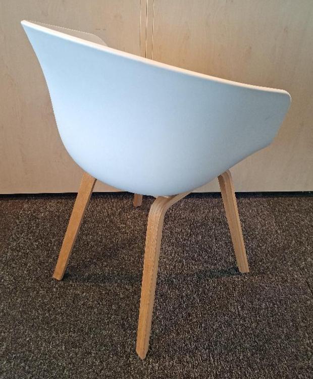 Fauteuil design Hee Welling modèle About A Chair édition Hay, coque en polypropylène blanc, piétement en bois naturel. 80 x 58 x 58 cm. 2 unités. Vendu à l’unité avec faculté de réunion. Localisation: 19 rue Neuve Tolbiac – 75013 Paris (8ème étage)
